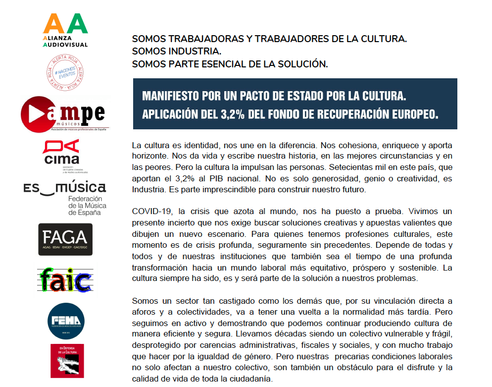 Accede al Manifiesto completo remitido al Ministerio de Cultura aquí